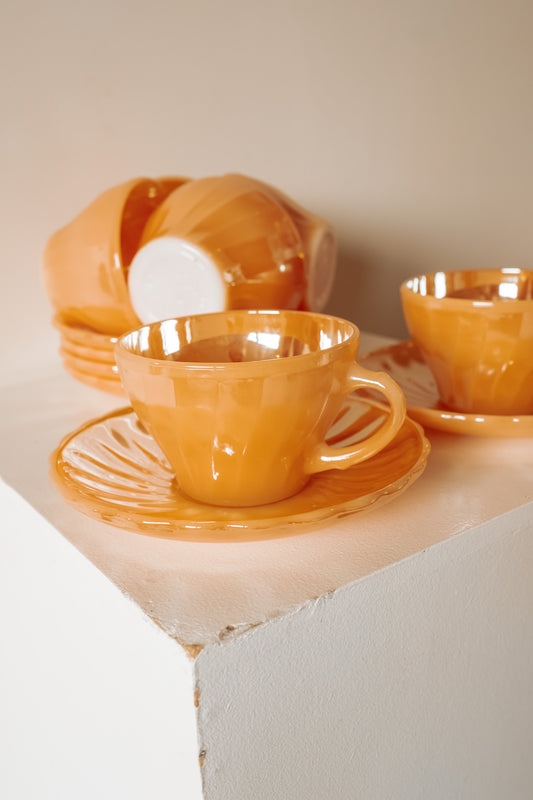 6x Anchor Hocking Fire-King kop en schotel (groot formaat)