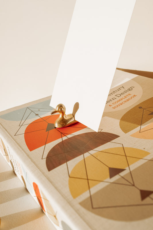 4x Messing messenleggers of naamkaarthouders in de vorm van een eendje