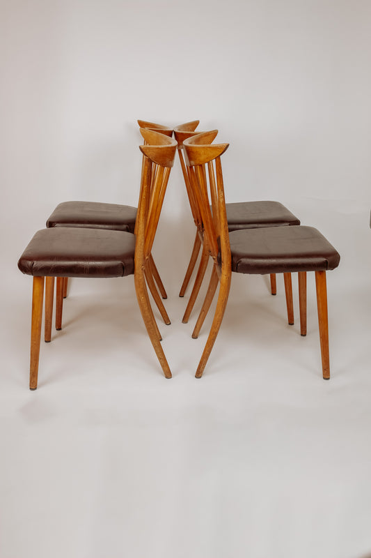 Set van 4 vintage houten spijlenstoel eetkamerstoelen