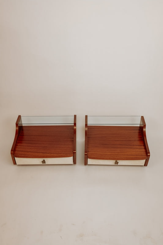 Set rood/witte Space Age nachtkastjes uit Italië, jaren 60