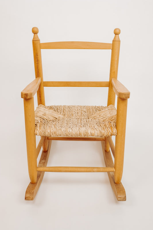 2x houten Scandinavische eetkamerstoelen met biezen zitting