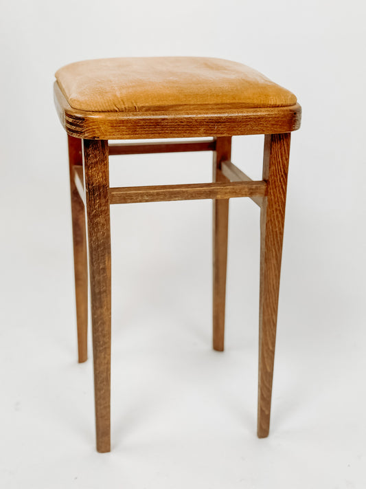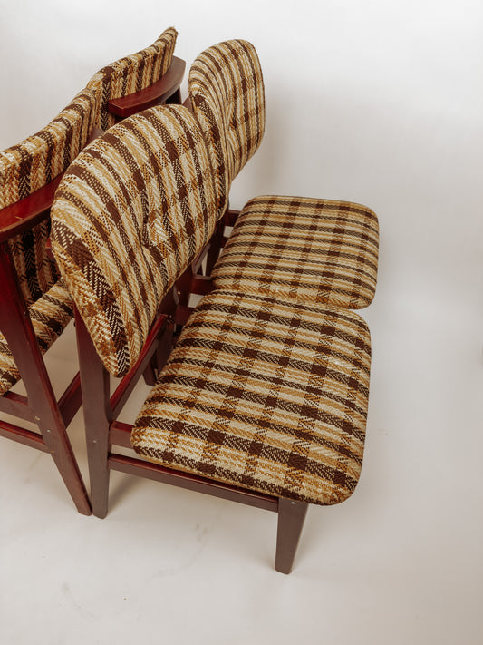 4x Vintage houten eetkamerstoelen met geblokte stof