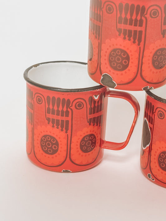 Set van 2 emaille Arabia Finel bekers, Finland jaren 60