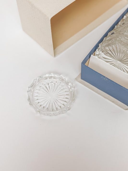 Set van 12 vintage kristalglazen onderzetters