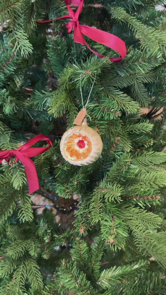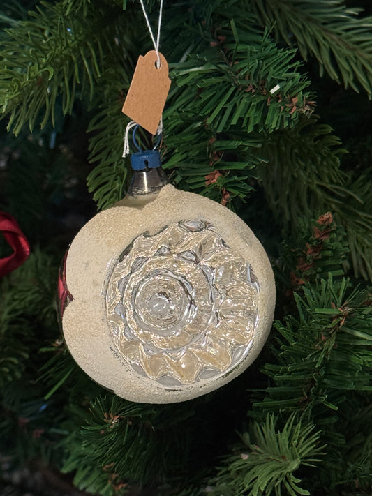 Antieke mondgeblazen deuk kerstbal met handbeschilderde kleuren