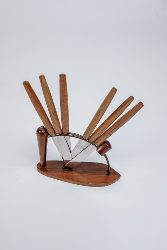 Vintage Danish teak knife set - 1960s
