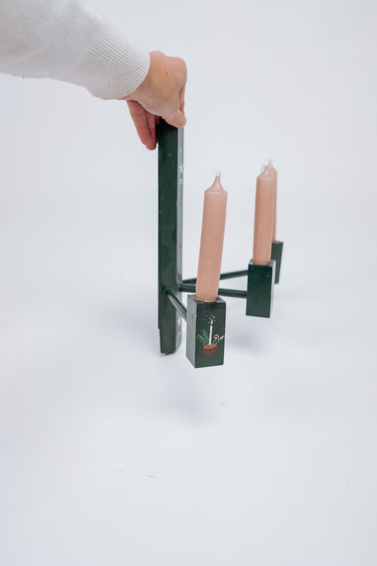 Zweedse handbeschilderde groene kerstkandelaar