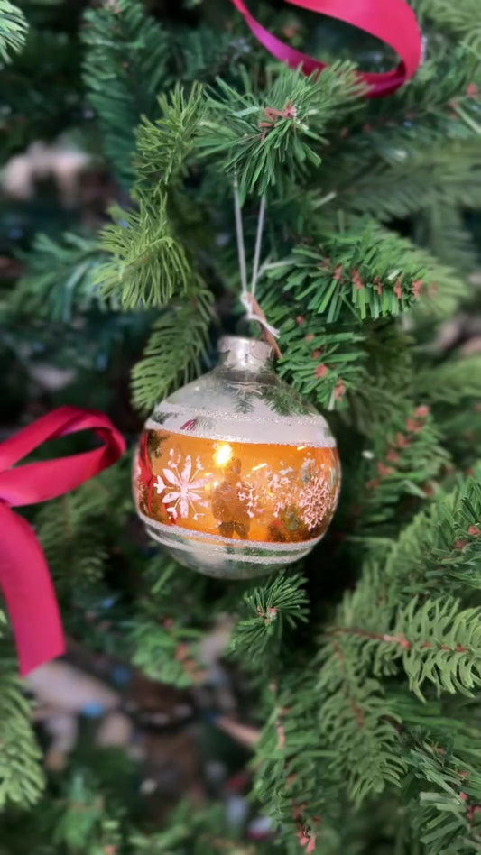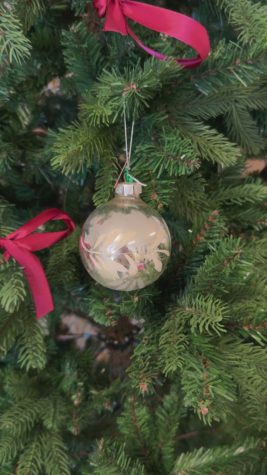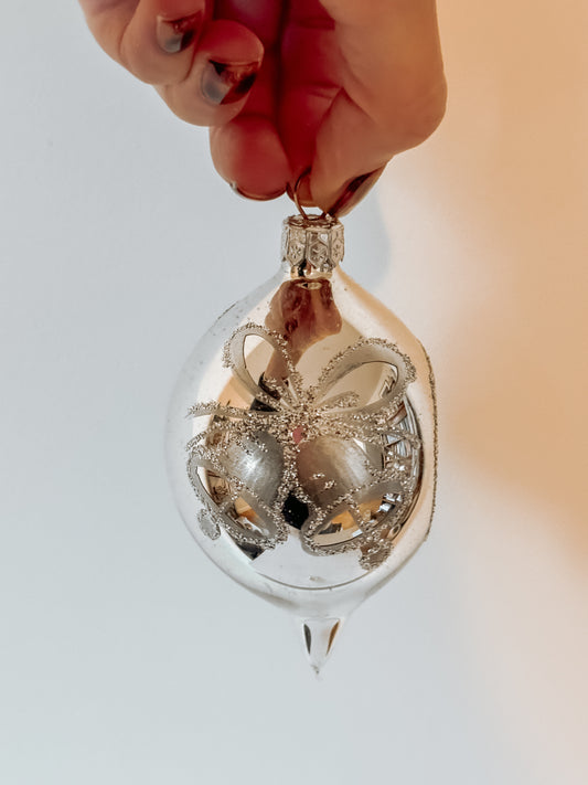 Grote handgemaakte vintage glazen kerstbal zilver gesuikerd