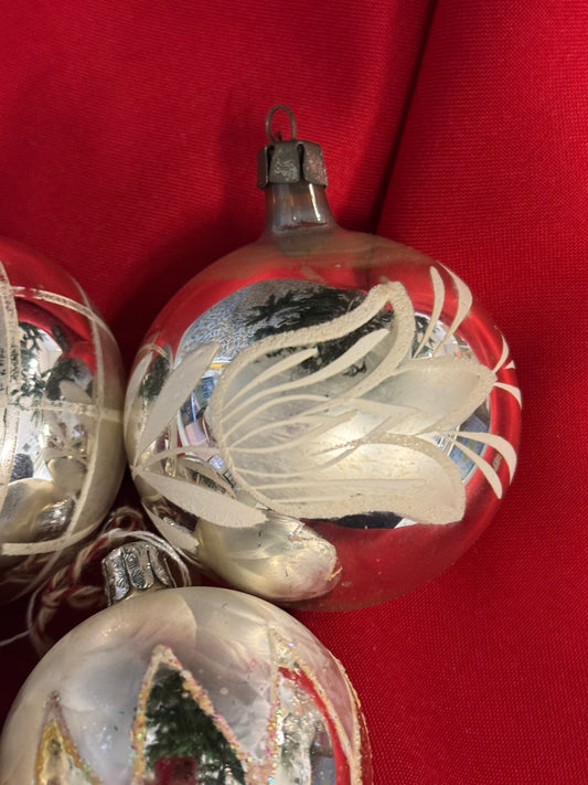 Set van 4 vintage mondgeblazen zilveren kerstballen