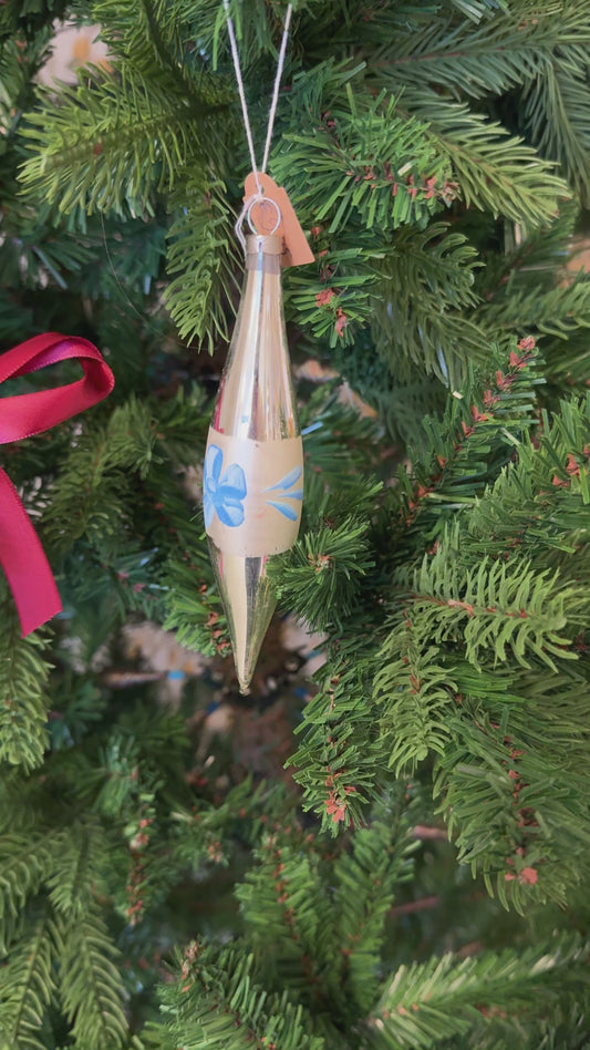 Vintage kerstbal zilveren pegel met blauwe bloemen