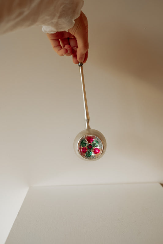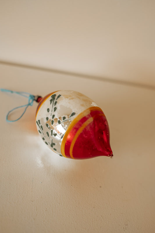 Vintage kerstbal zilveren pegel met handbeschilderde details