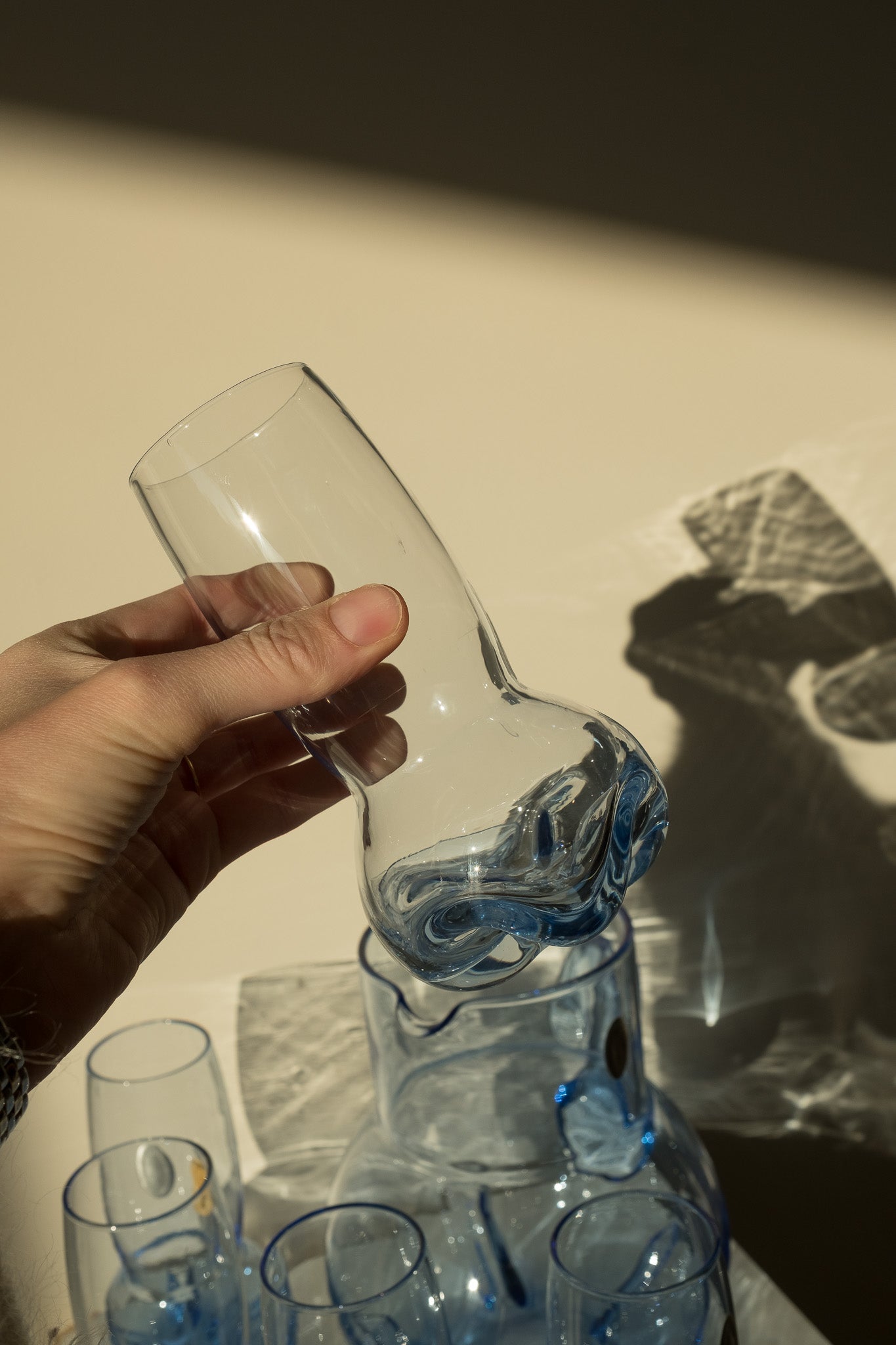 Blauwe kristallen glazen set + karaf