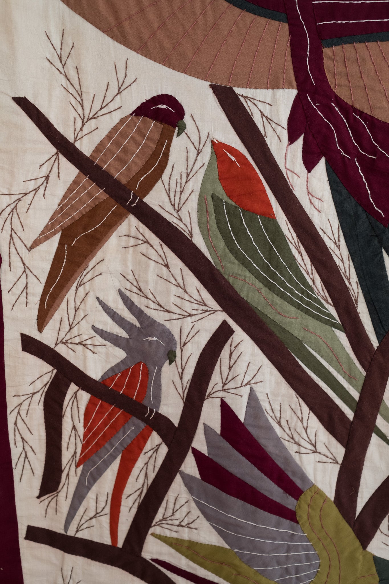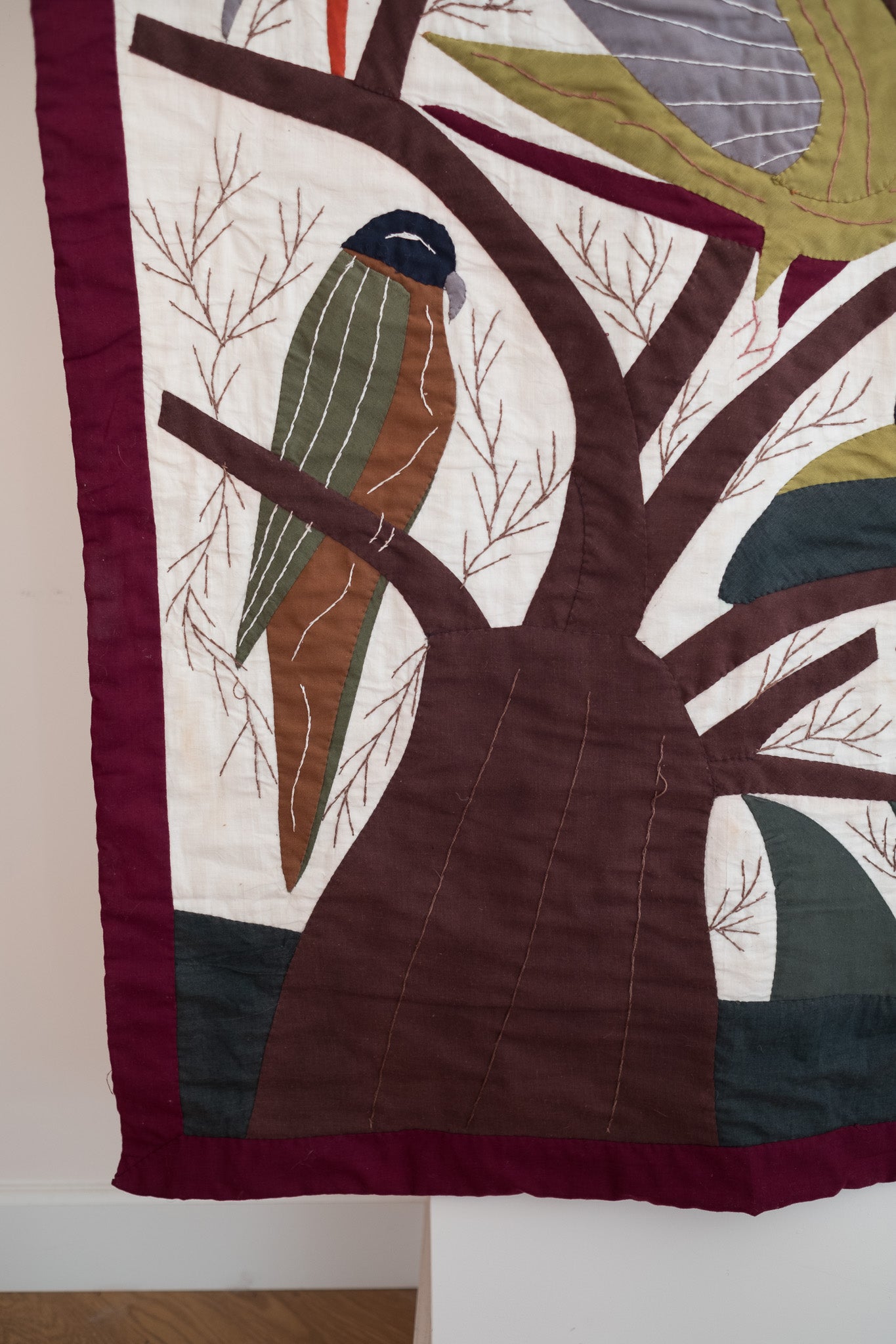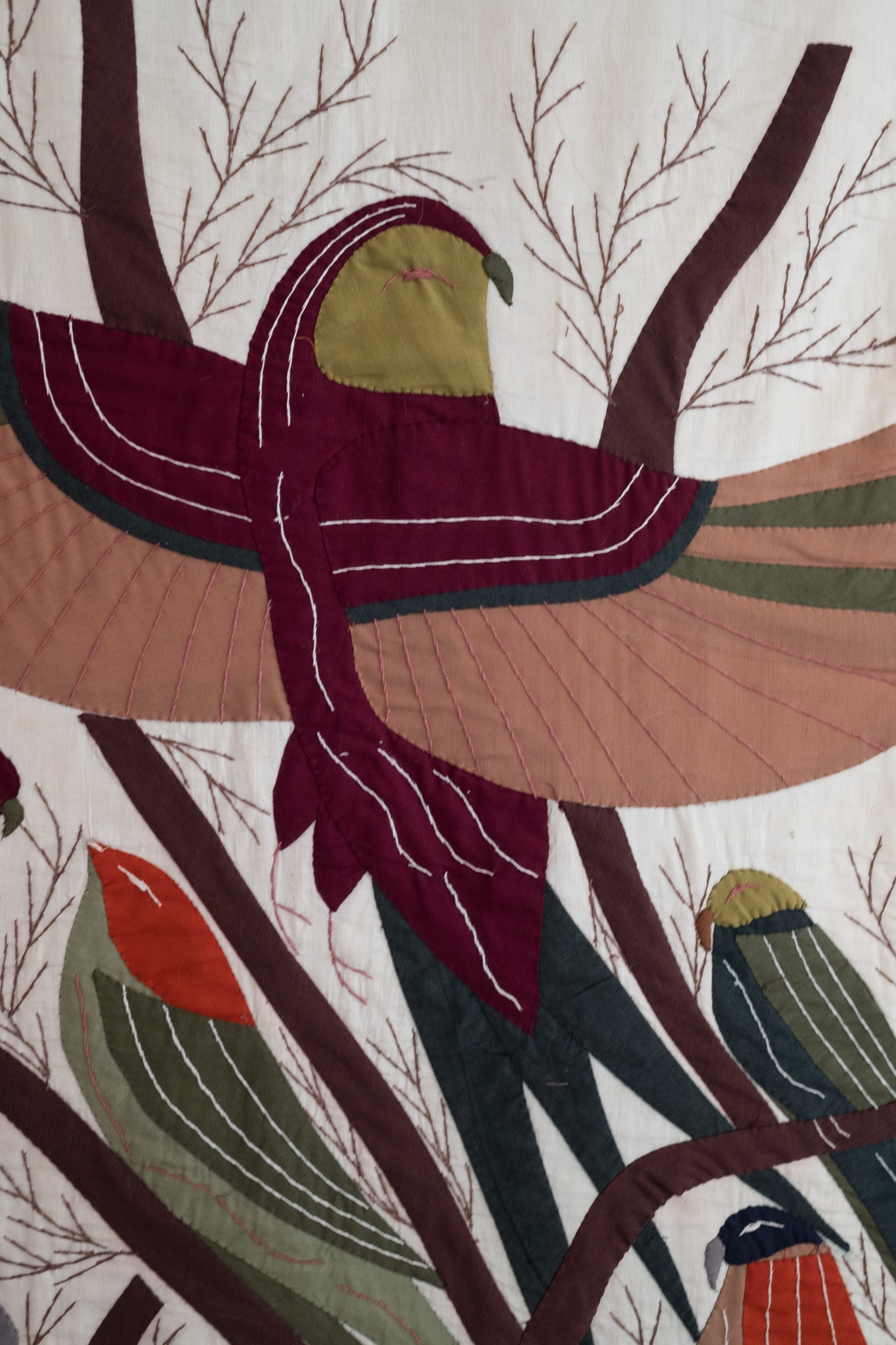 Handgemaakt quilted wandkleed met vogels (172x83cm)