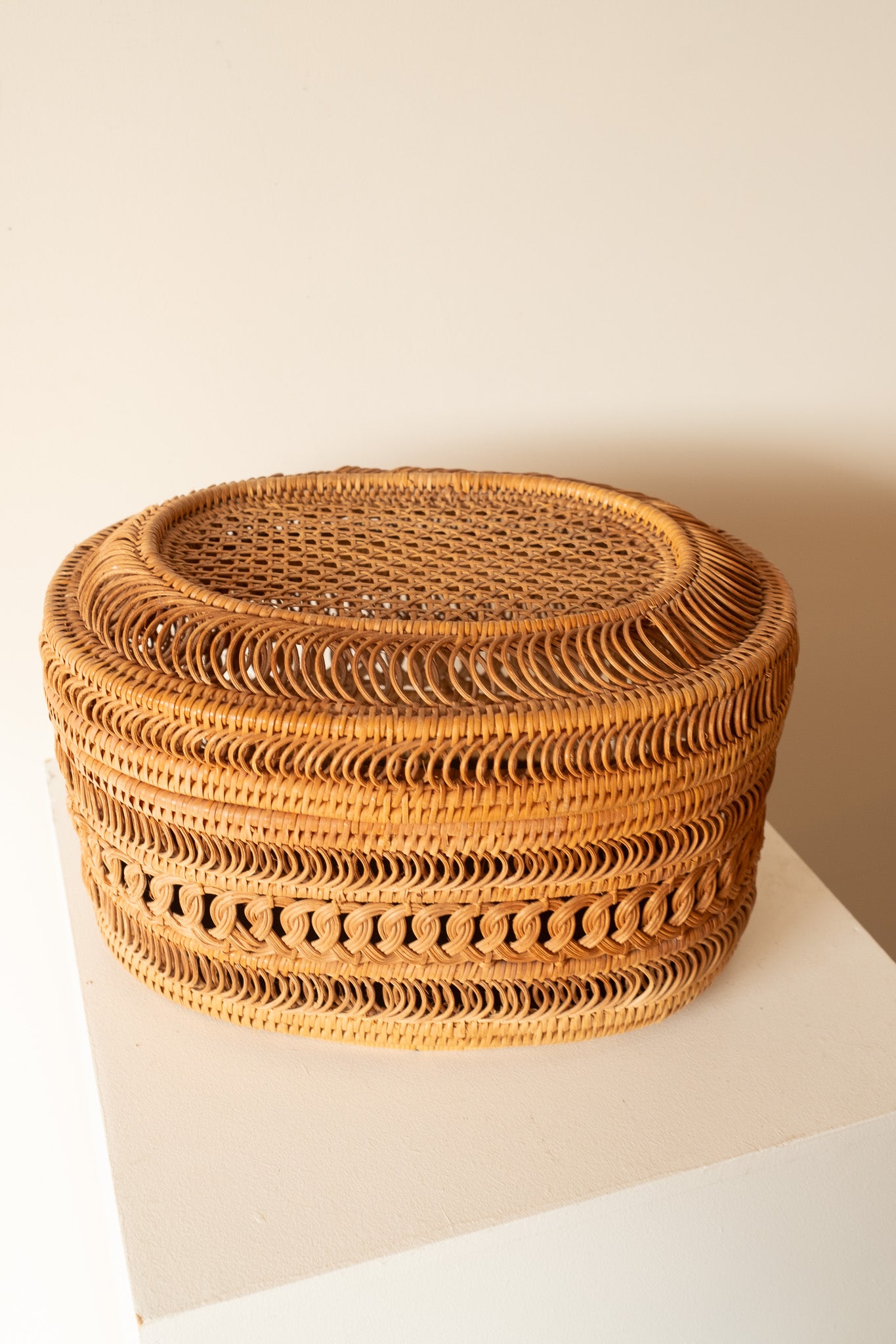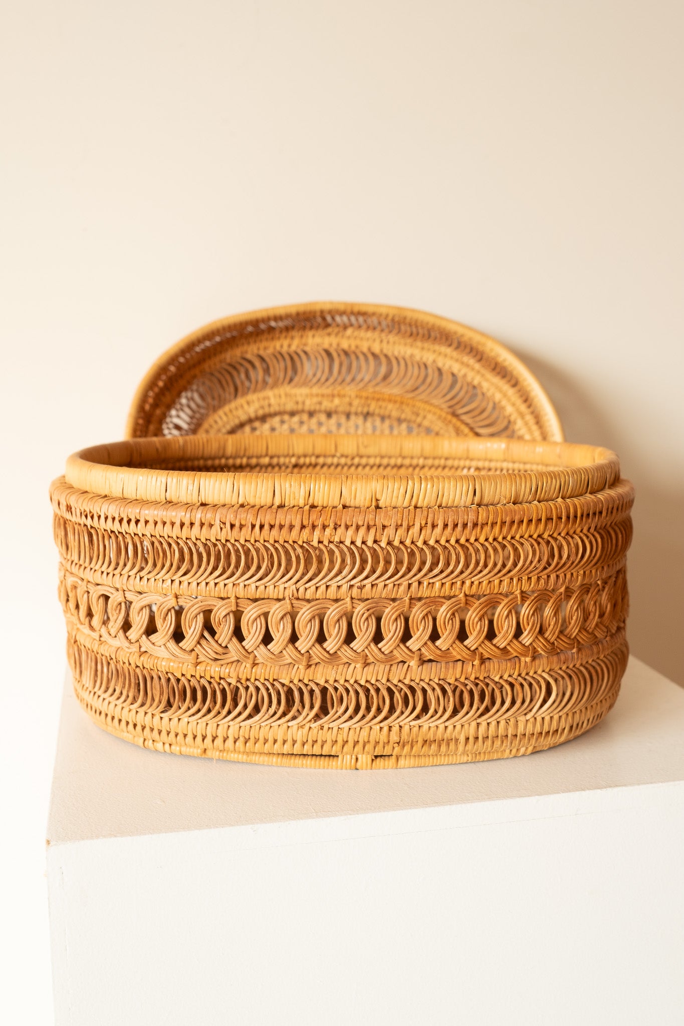 Handgevlochten rieten mand met deksel