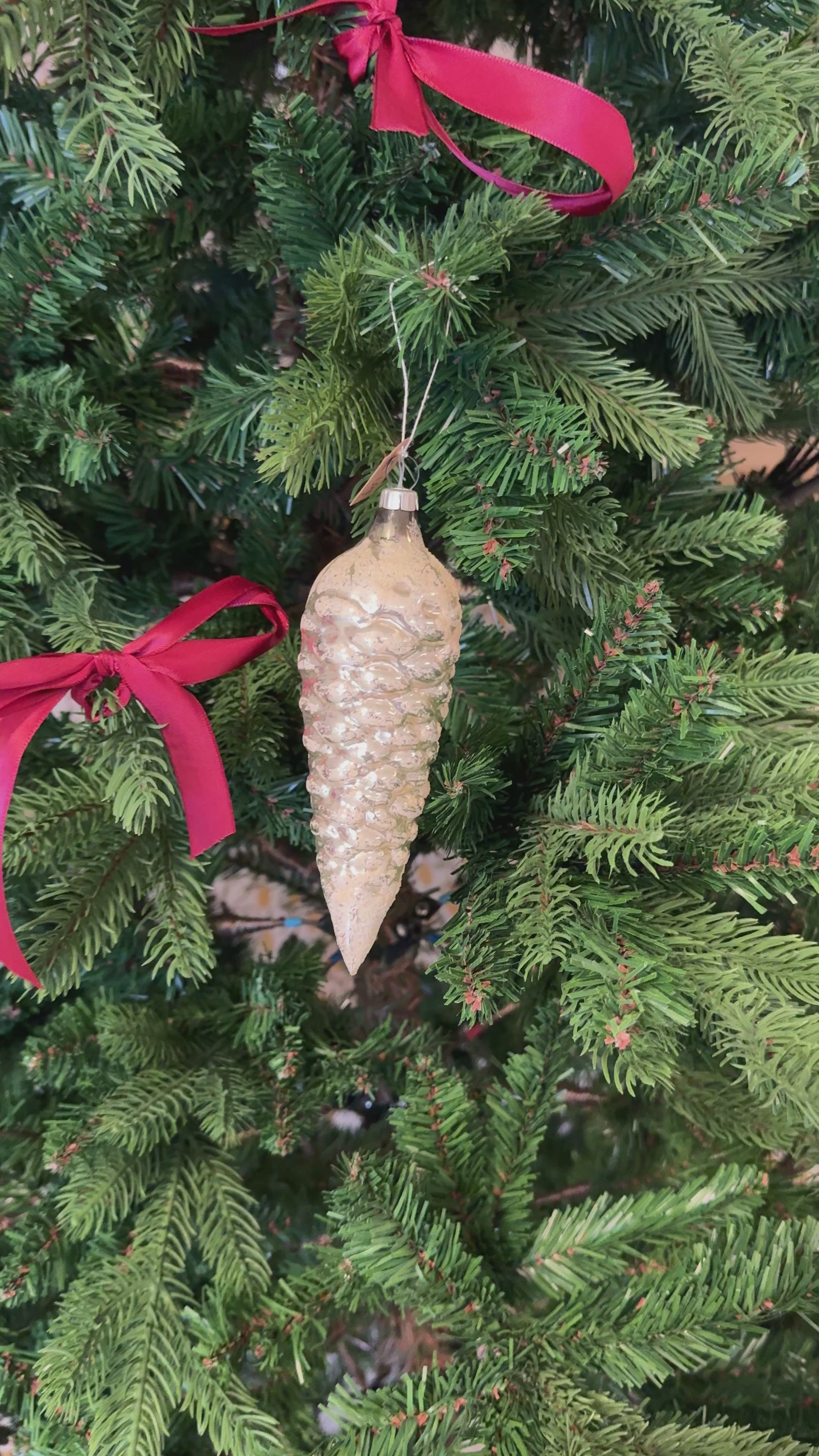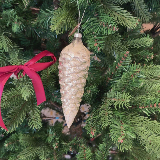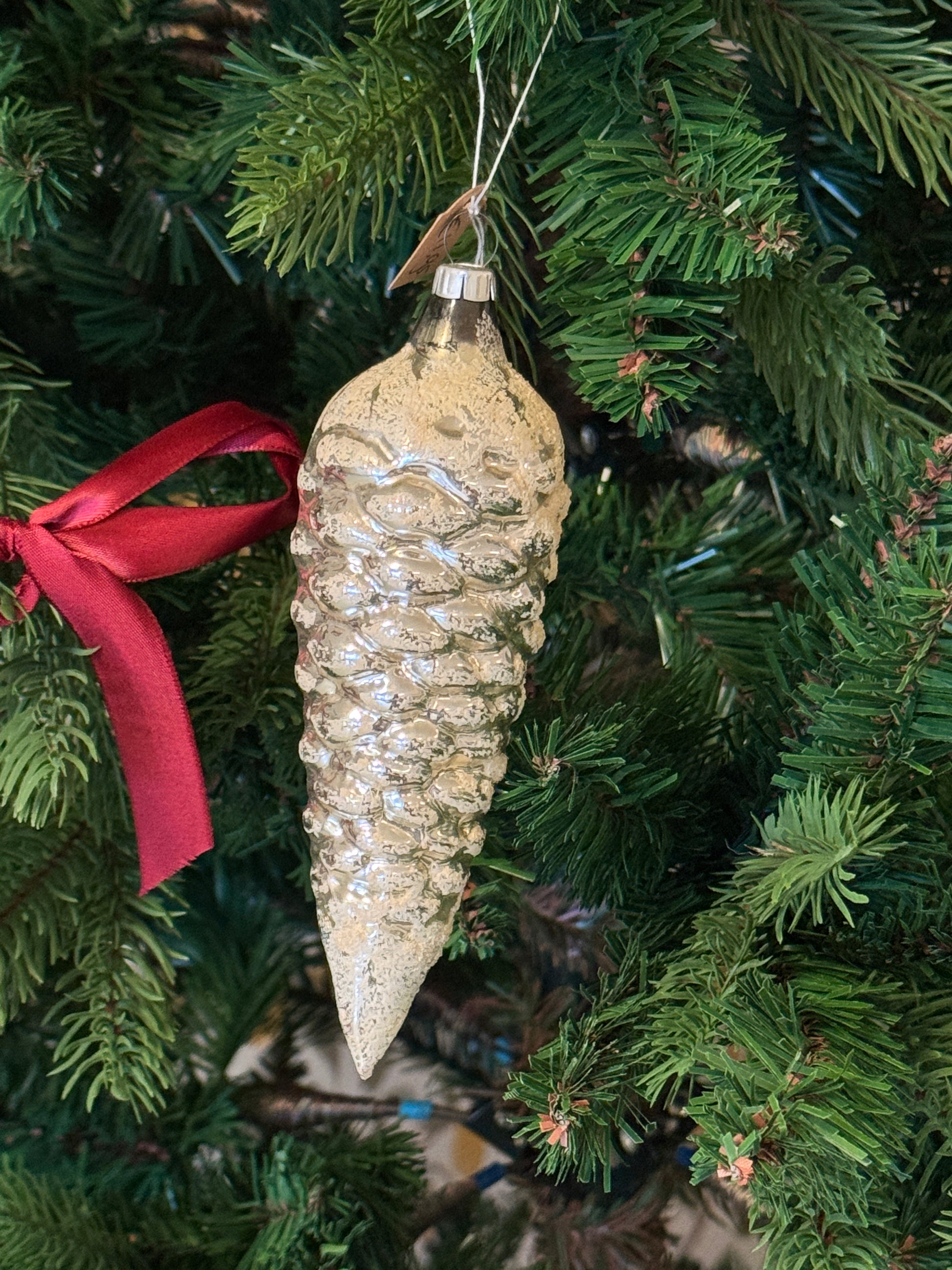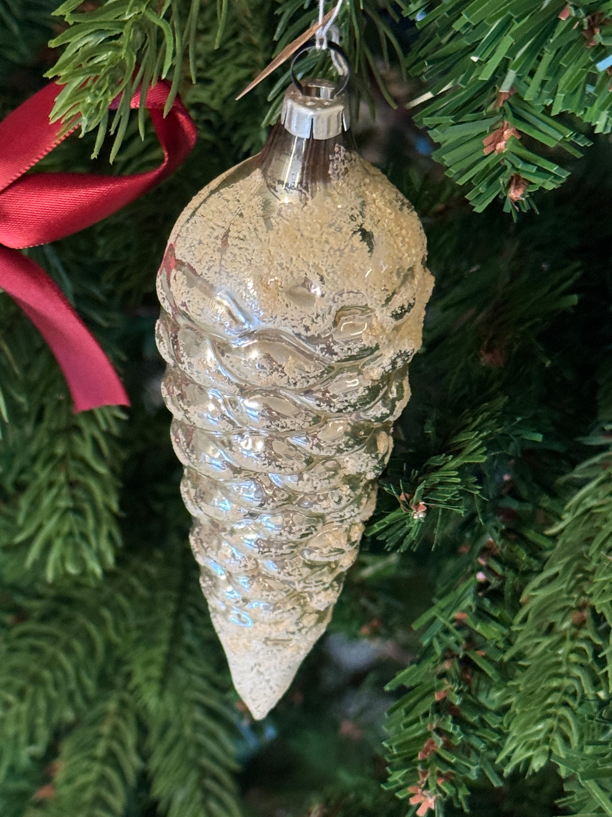 Vintage glazen dennenappel kerstornament zilver