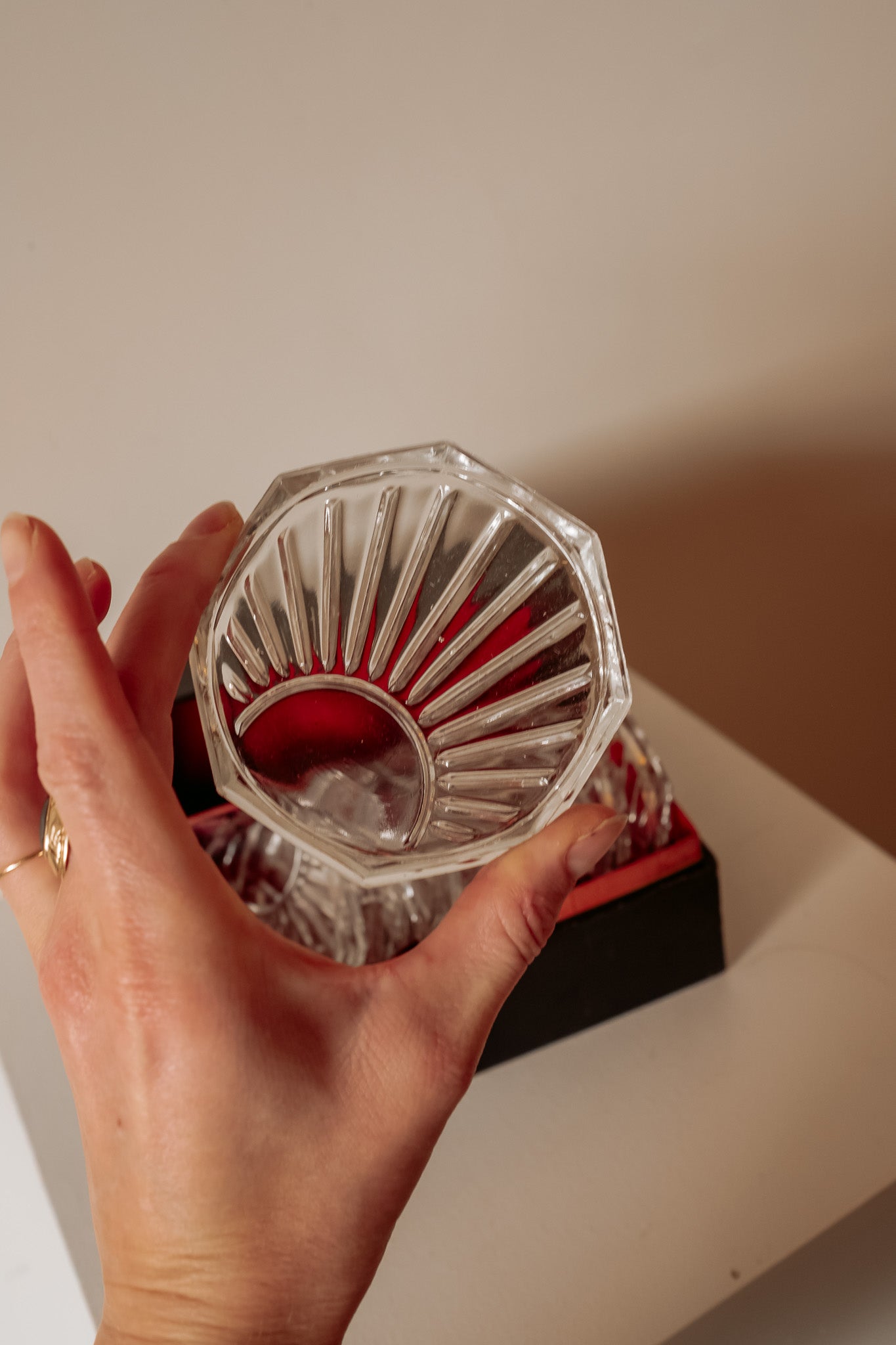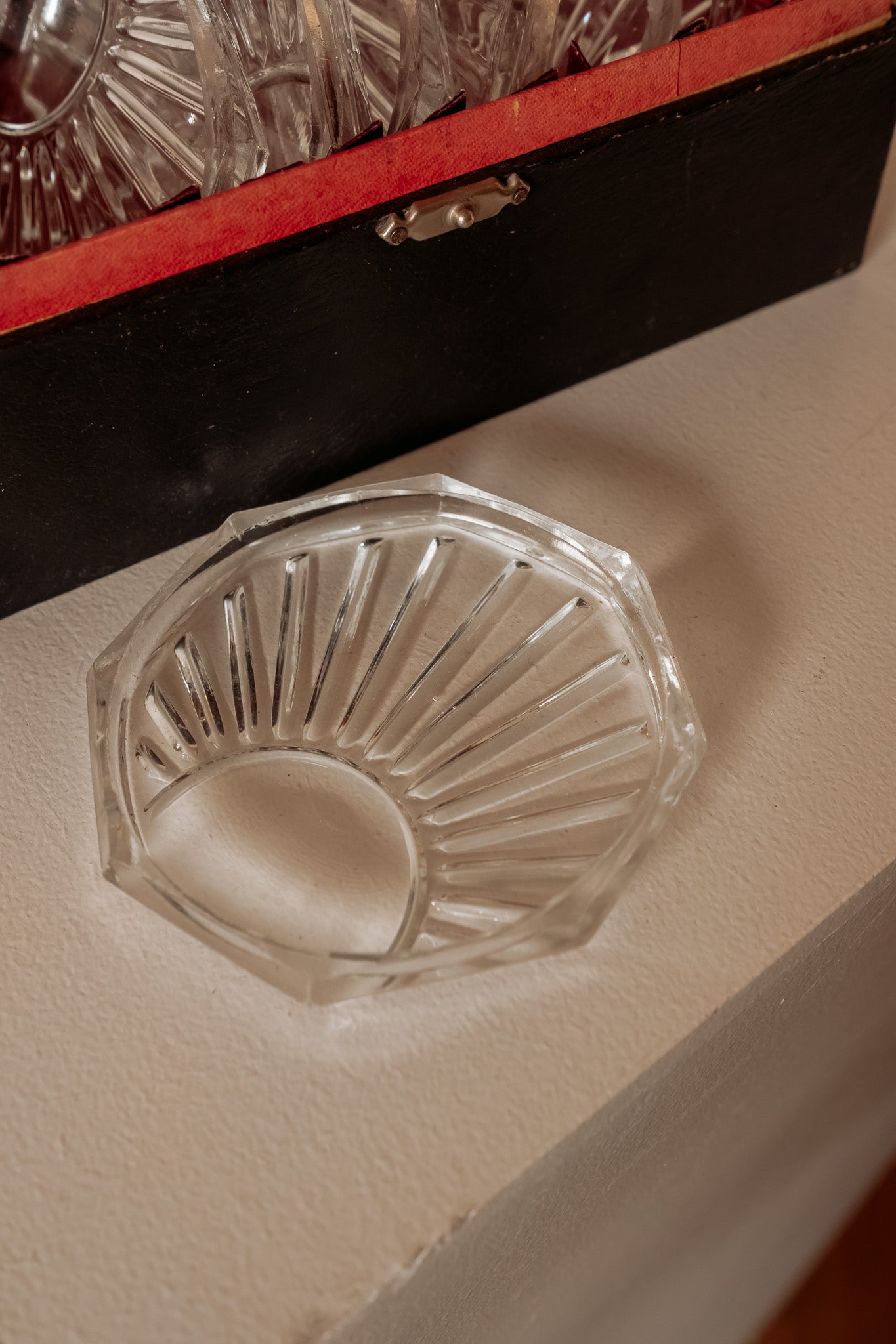 Vintage glazen onderzetters in bijbehorende doos