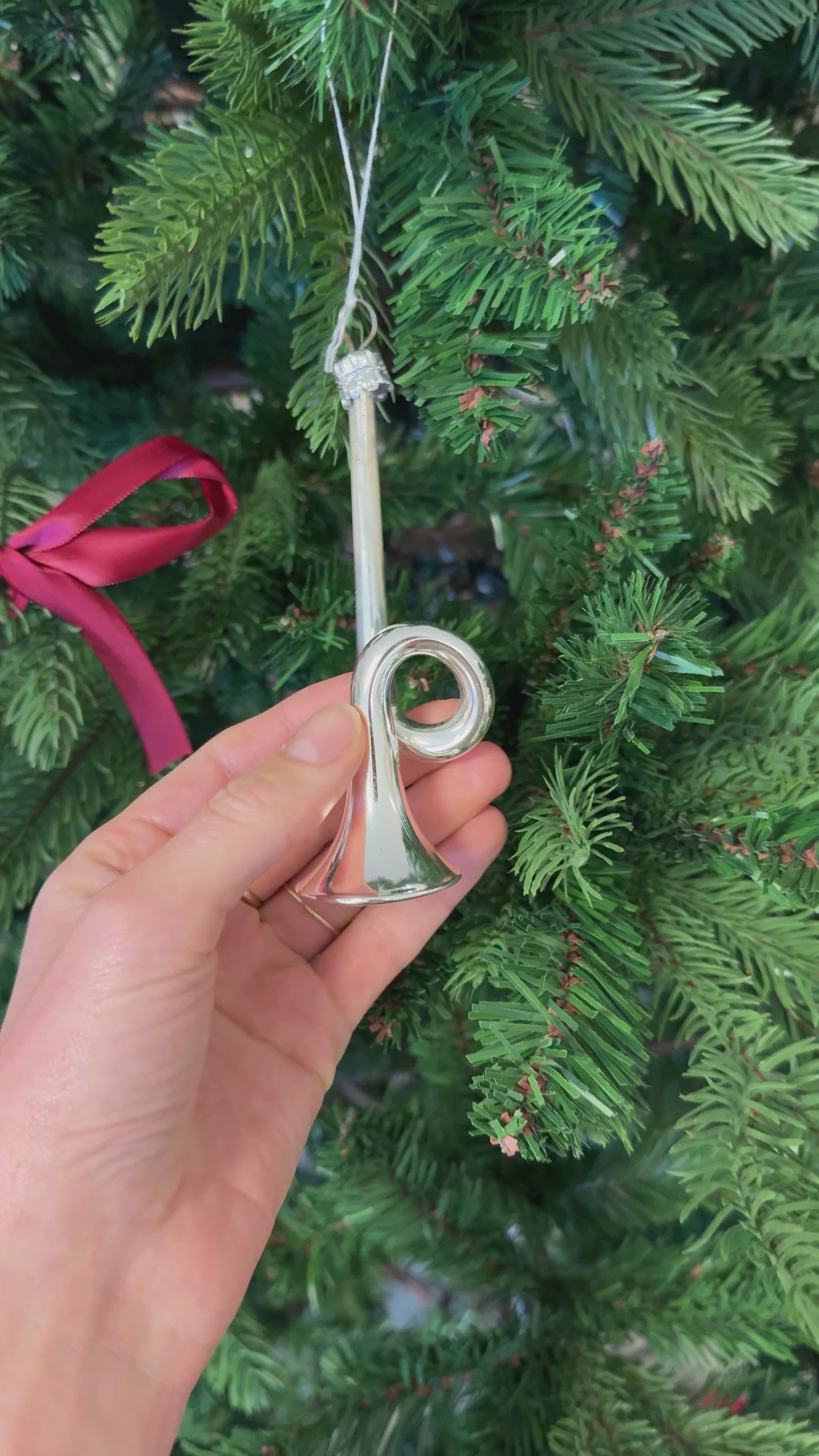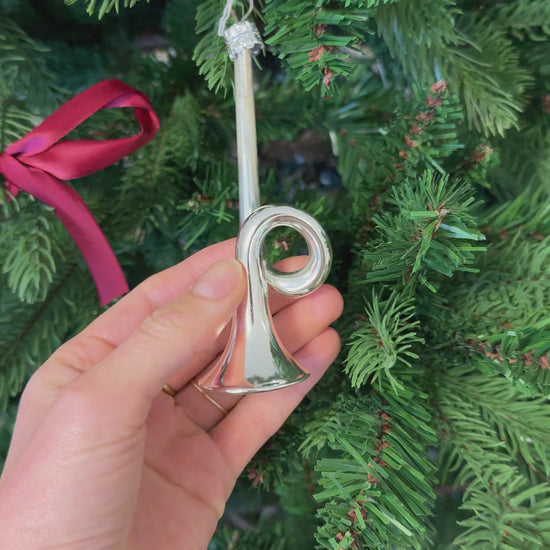 Vintage glazen trompet kerstornament zilver. 11x3cm