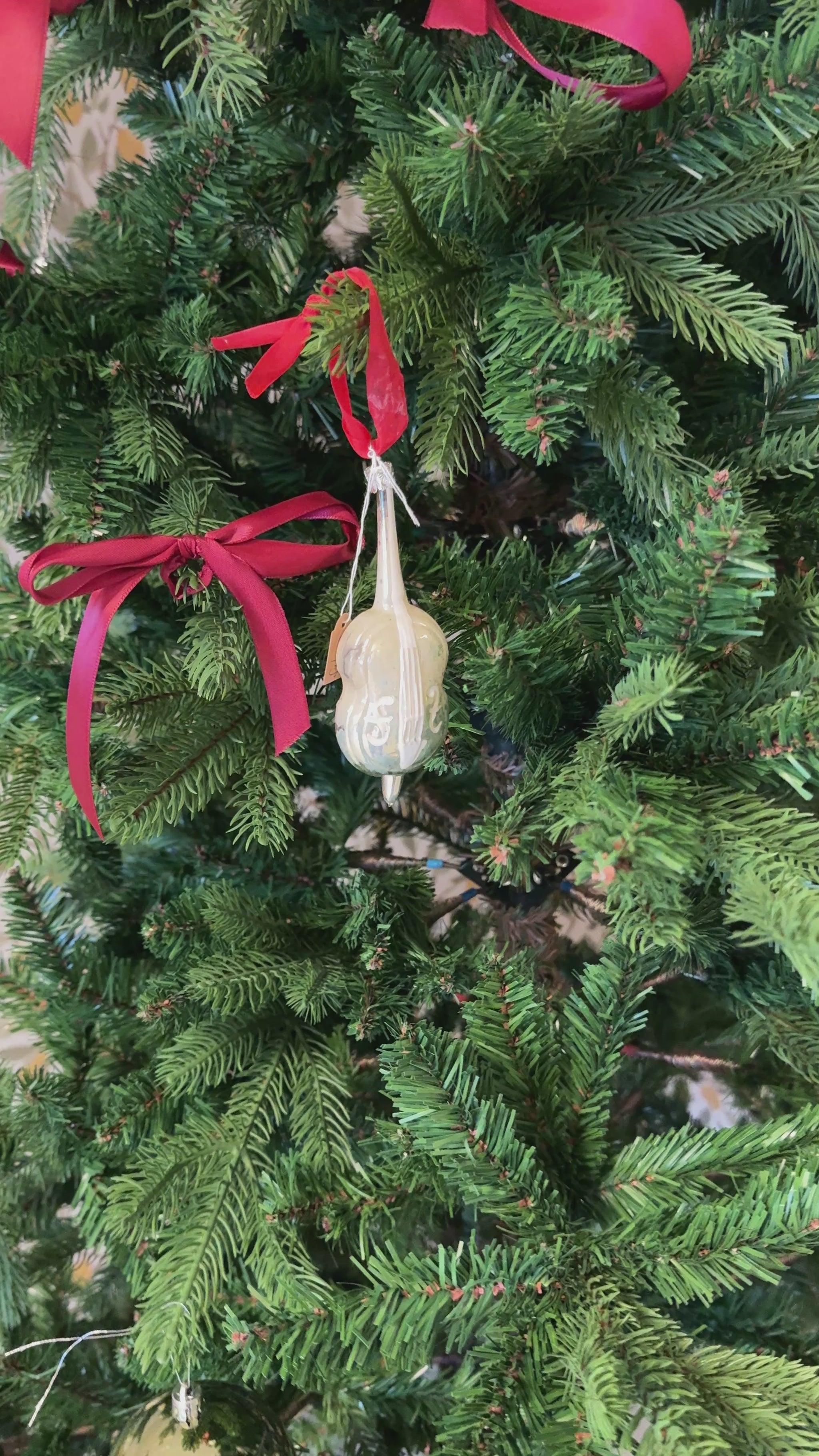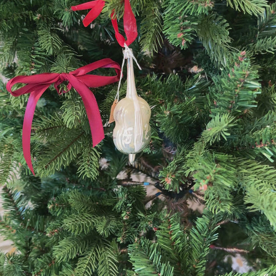 Vintage glazen vidool kerstornament zilver. 12x4,5cm