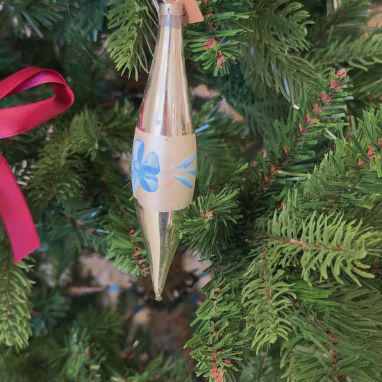 Vintage kerstbal zilveren pegel met blauwe bloemen