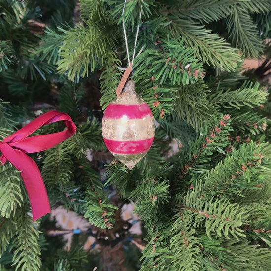 Vintage kerstbal zilveren/roze pegel mondgeblazen
