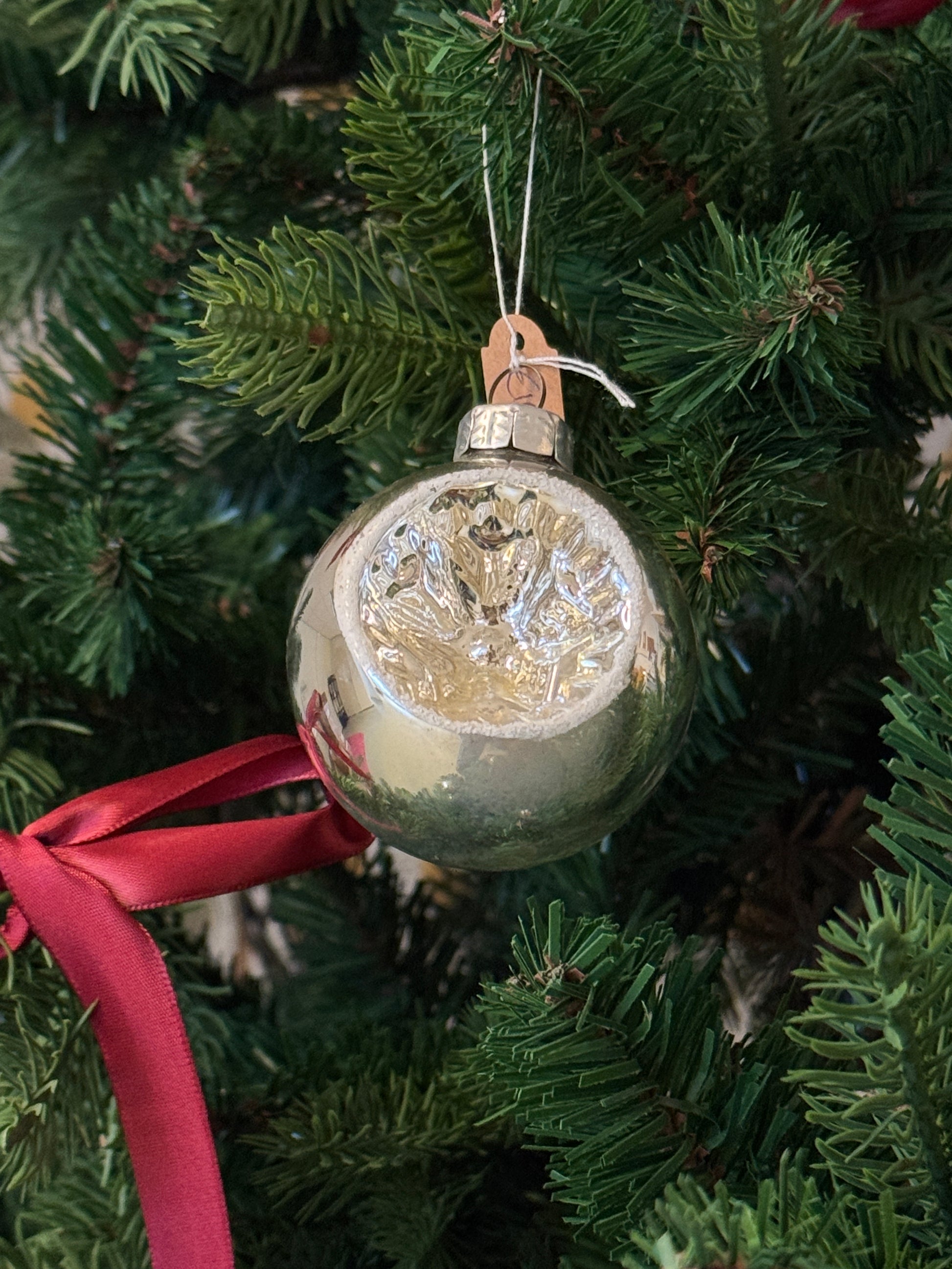 Vintage zilveren deuk kerstbal
