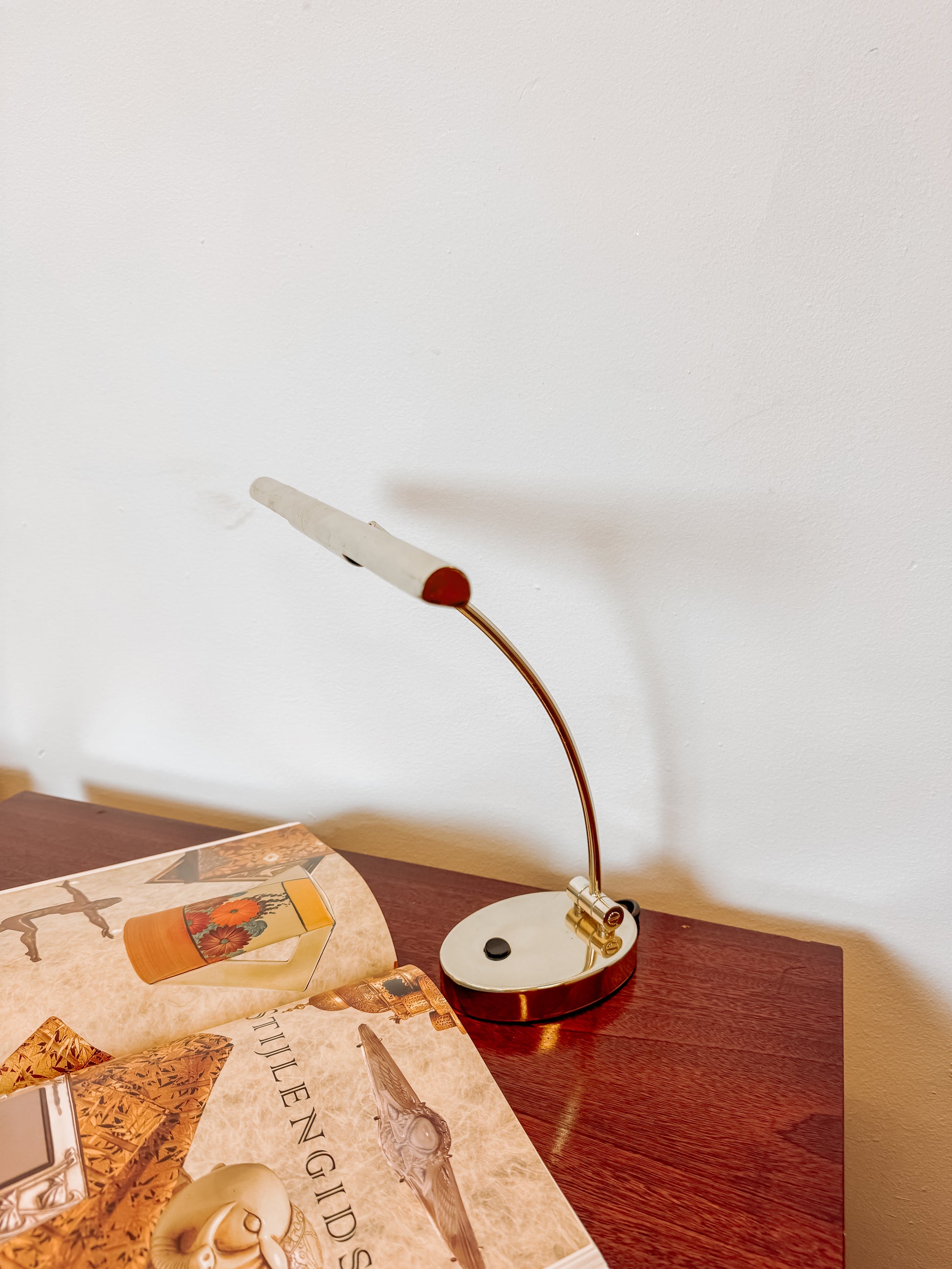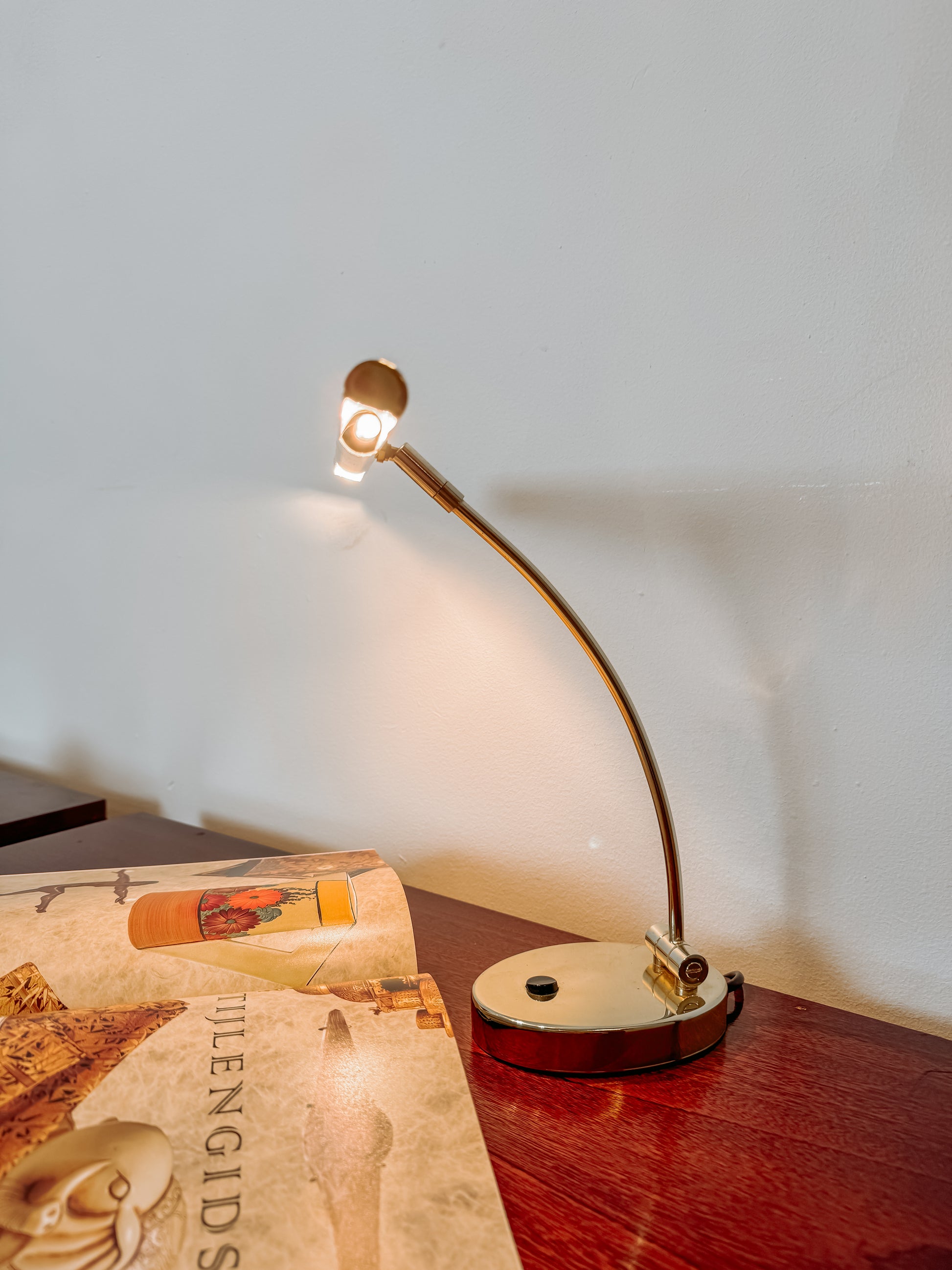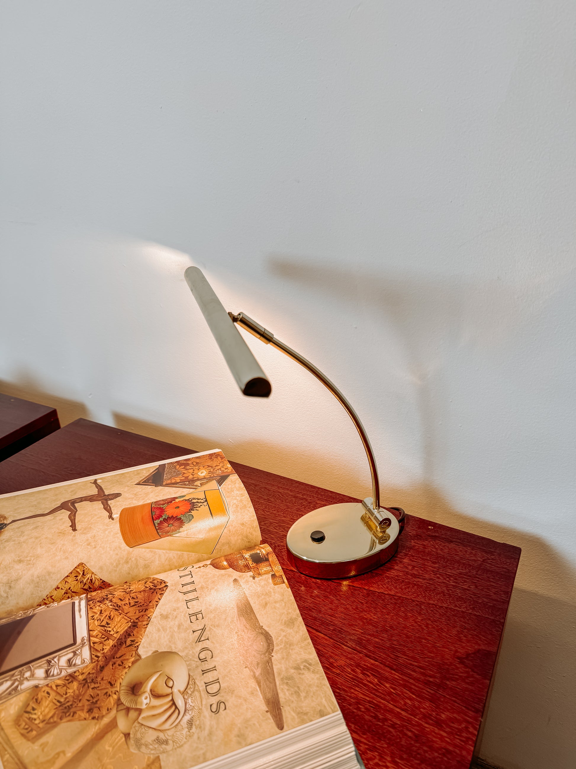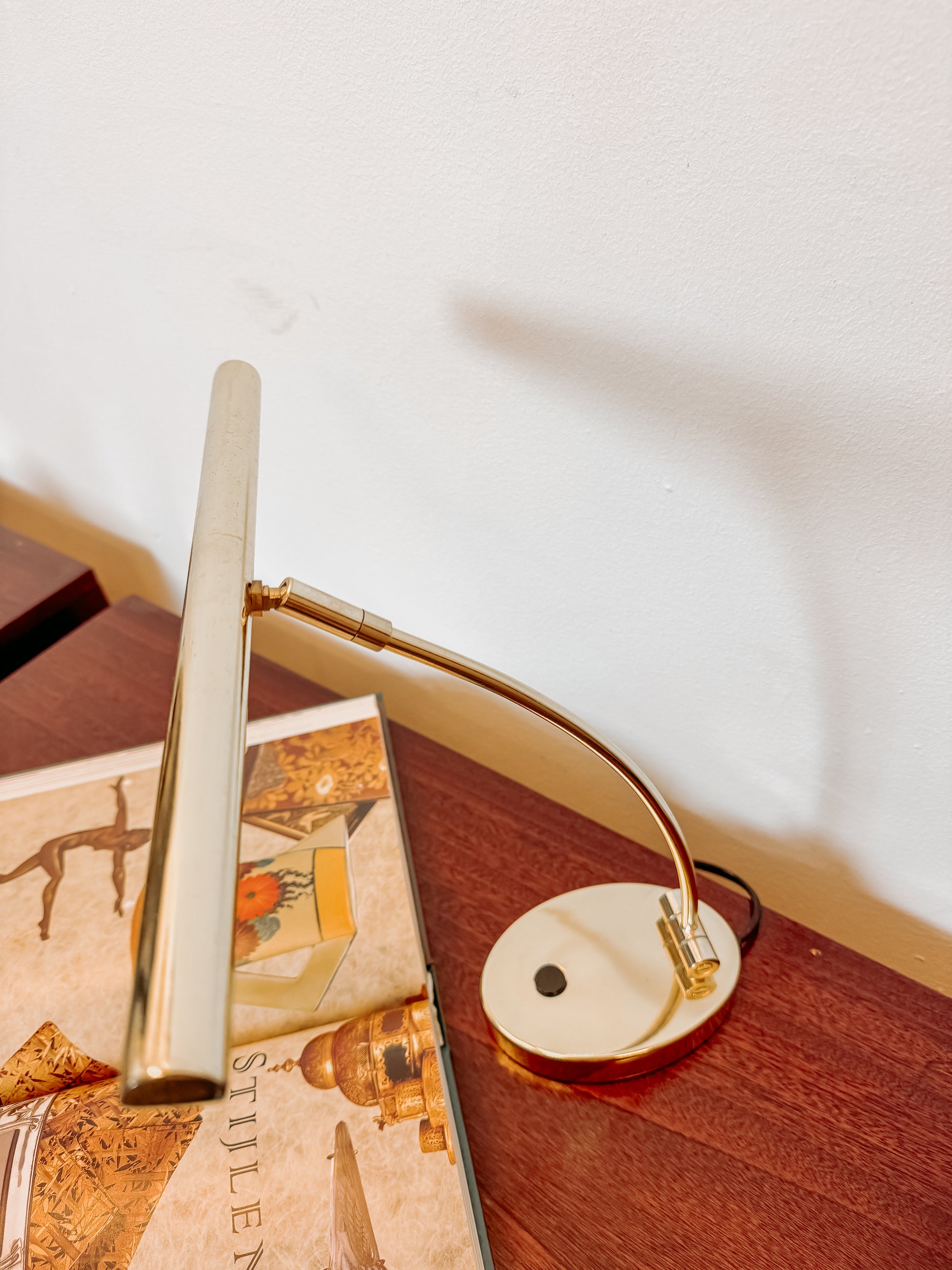 Prachtig messing leeslampje of pianolampje van glanzend messing. Zowel de armatuur als de lamp is kantelbaar. Perfect om bijvoorbeeld een koffietafelboek uit te lichten. Wordt geleverd met de bijbehorende led lampjes.
