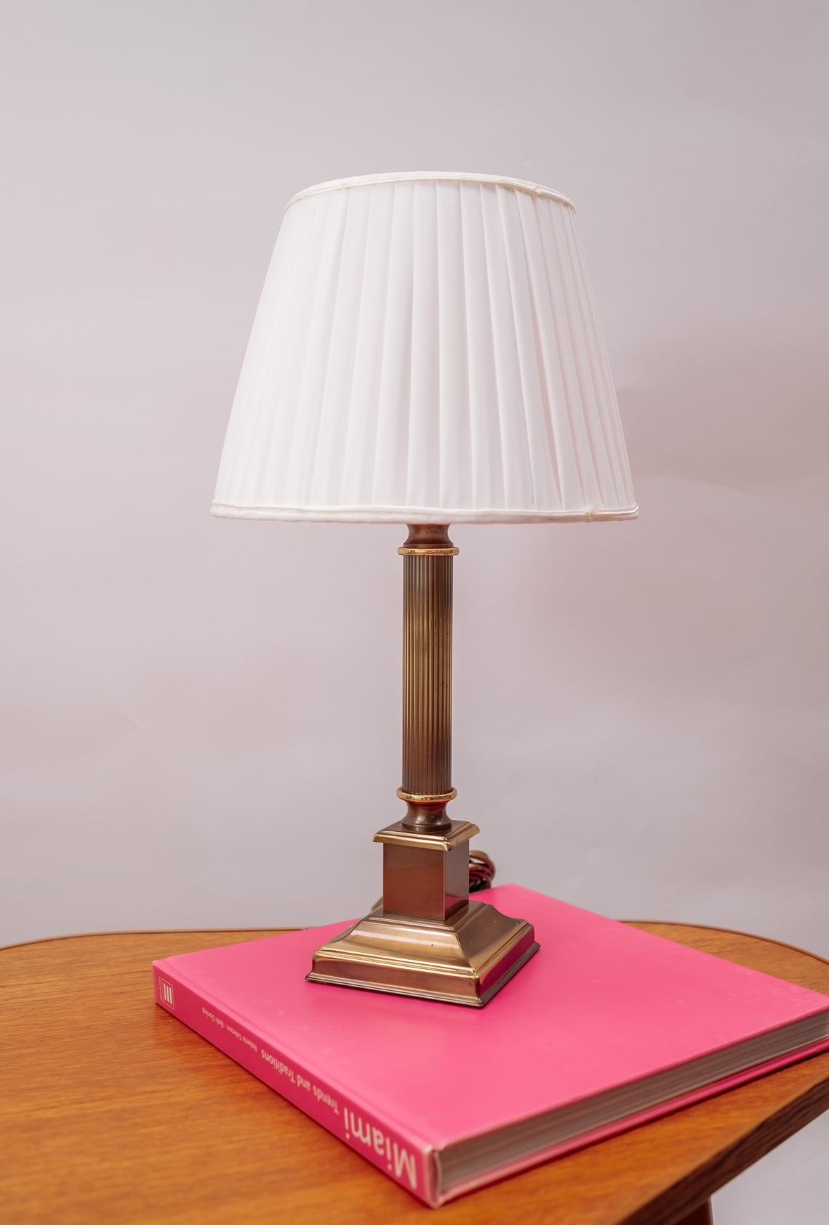 Prachtige messing tafellamp (Excl kap). De lamp is in hele mooie conditie. De lamp heeft een gewone E27 fitting en wordt geleverd zonder de gloeilamp. Afmetingen: H33cm