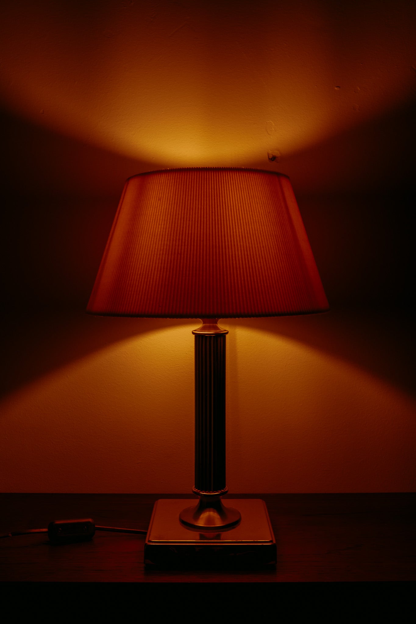 Messing vintage tafellamp met crèmekleurige plisse kap