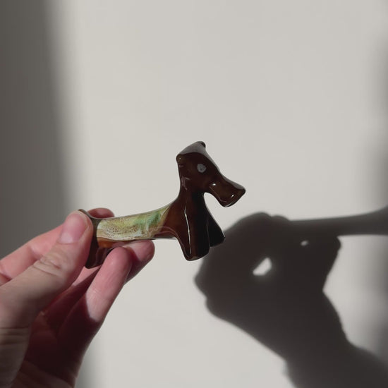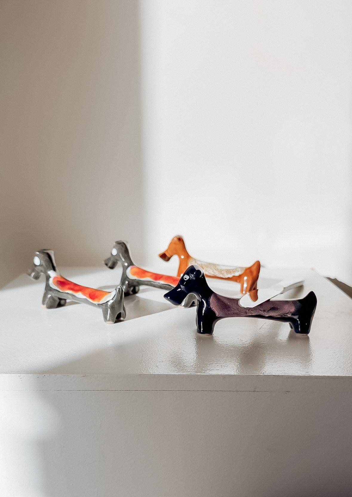 Set van 4 handbeschilderde keramieken teckel messenleggers (2 sets beschikbaar)
