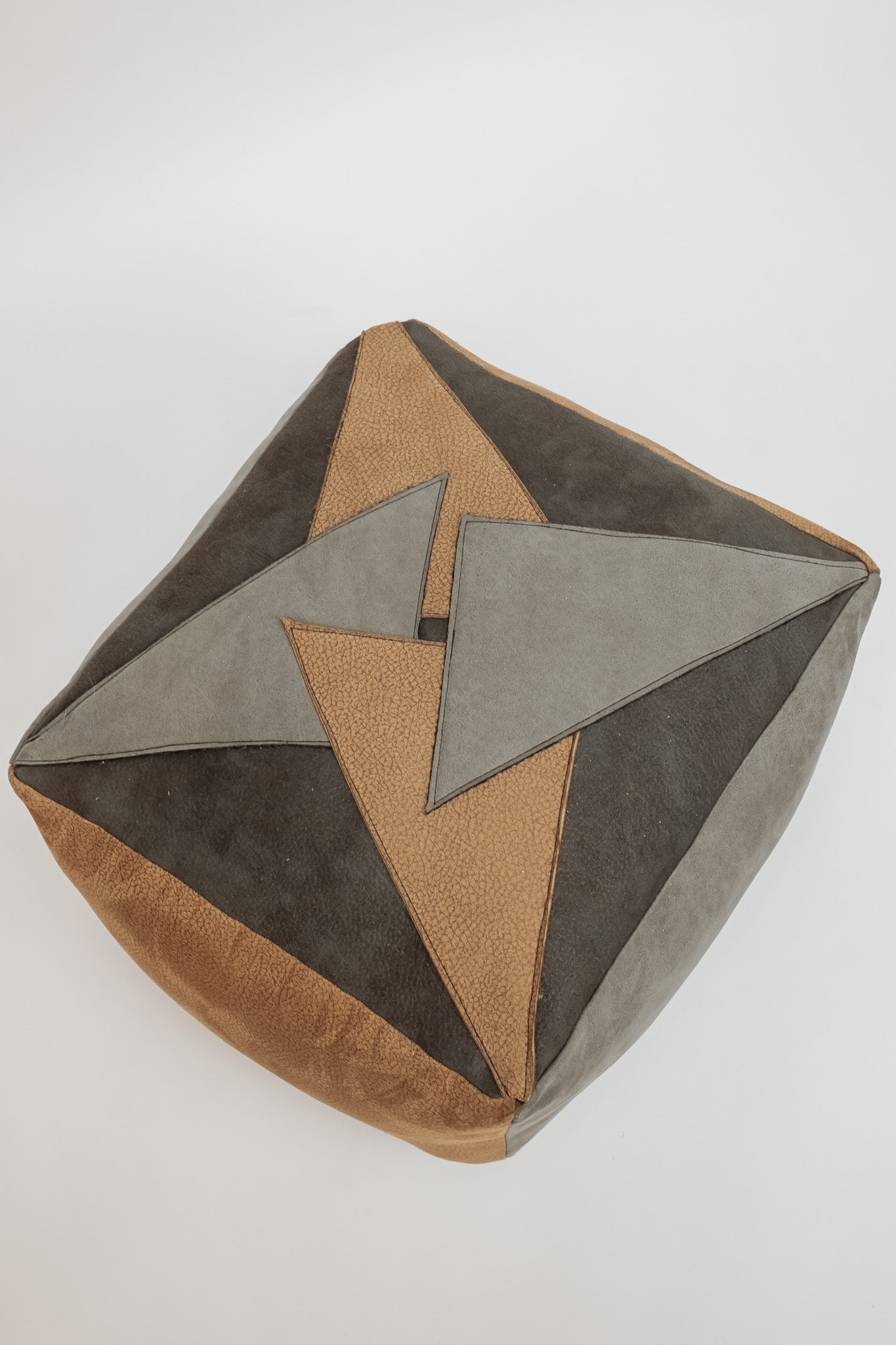 Bijzondere vintage vierkante ottoman / poef in bruin, grijs en zwart leer. Lekker zwaar en in prachtige conditie!